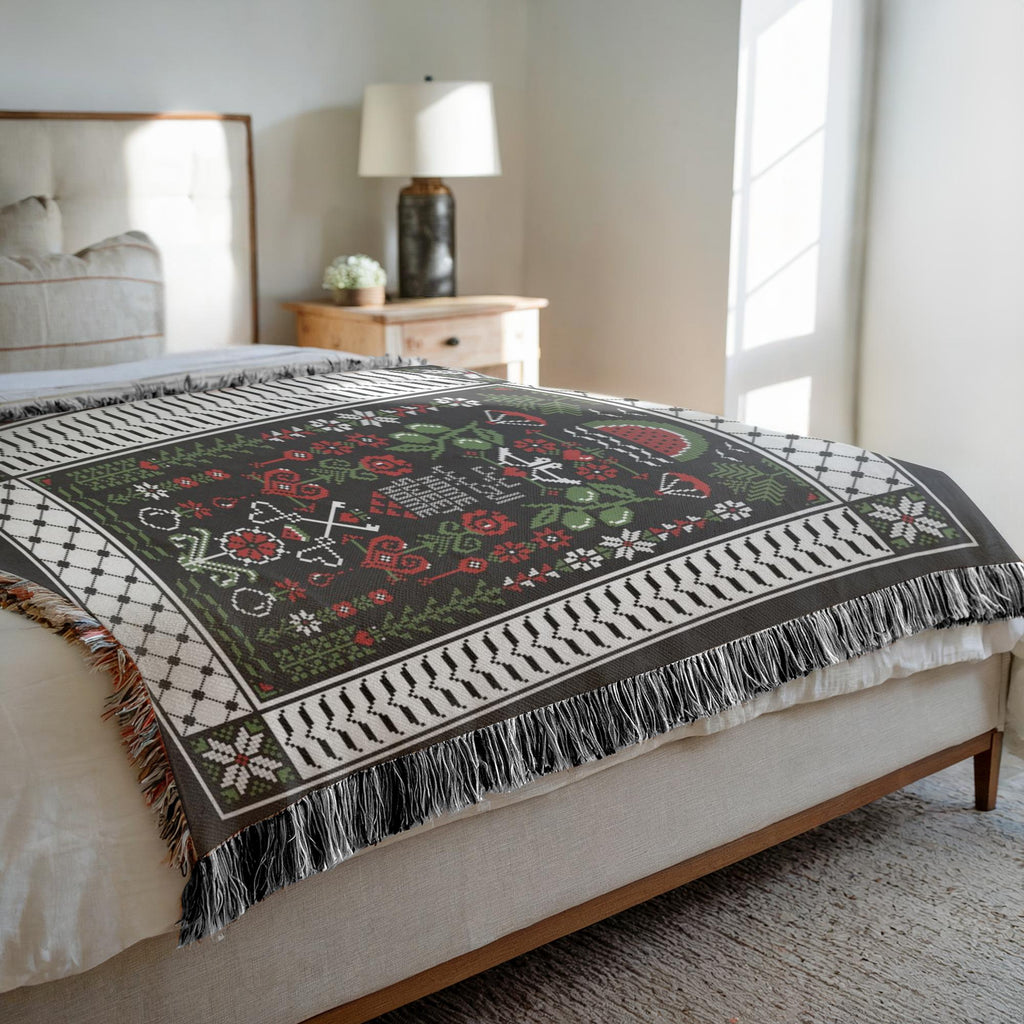 This soft woven blanket is not only comfortable but versatile. Use it as a wall decoration, a throw for your sofa, or even a picnic spread the possibilities are endless. Each blanket is made of 100% pure cotton that is dyed in colors to bring your unique image to life. Crafted with an intricate woven production process, rather than a printed technique, our blanket creates a distinctive, more luxurious custom product. This durable, warm blanket wth colorful fringed edges is the perfect canvas for your creative designs, graphics or photography.